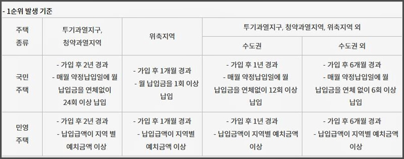- 지역별 예치금액(청약저축은 납입 횟수) 차이로 인하여 순위발생일이 변경될 수 있습니다.